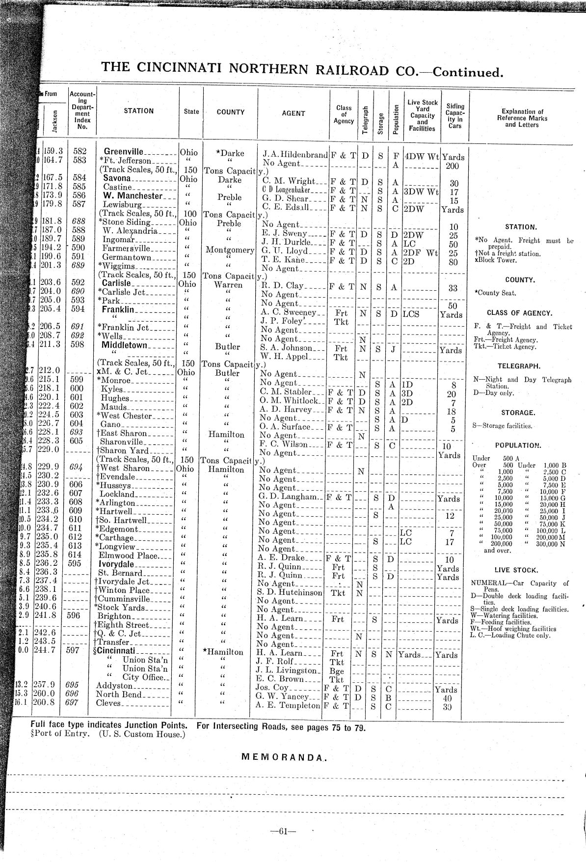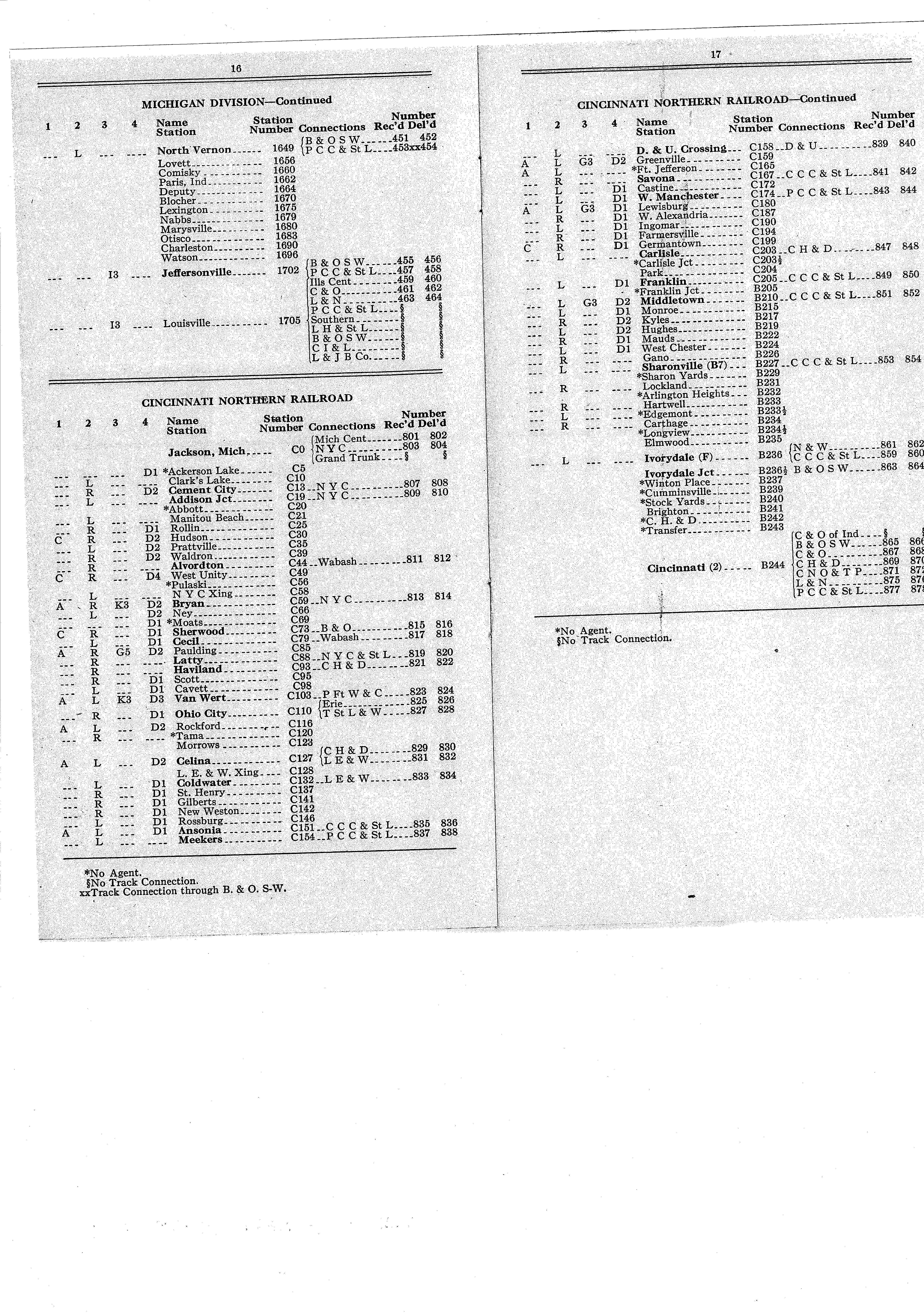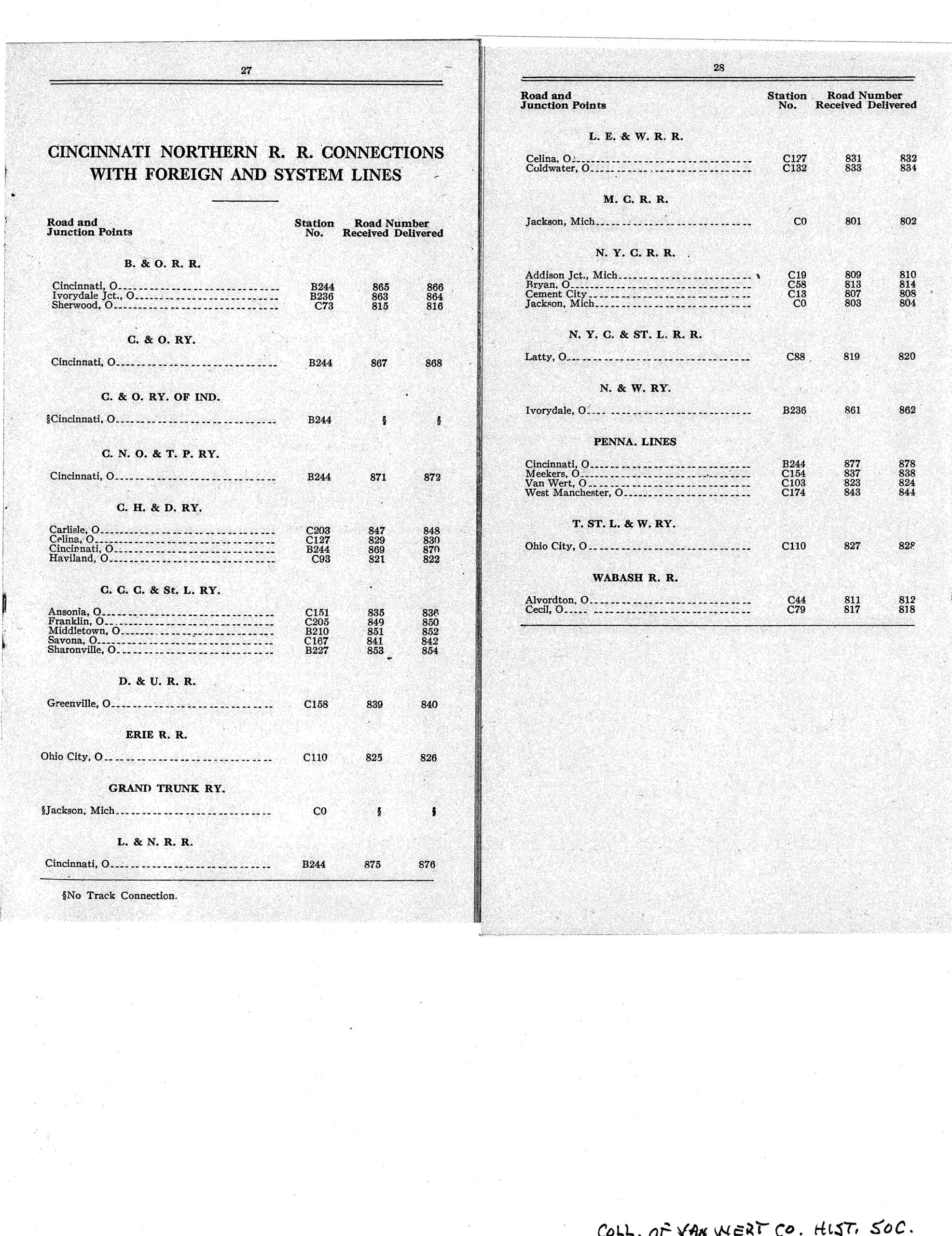 THE CINCINNATI NORTHERN RAILROAD STRUCTURES, SIDINGS, FACILITIES