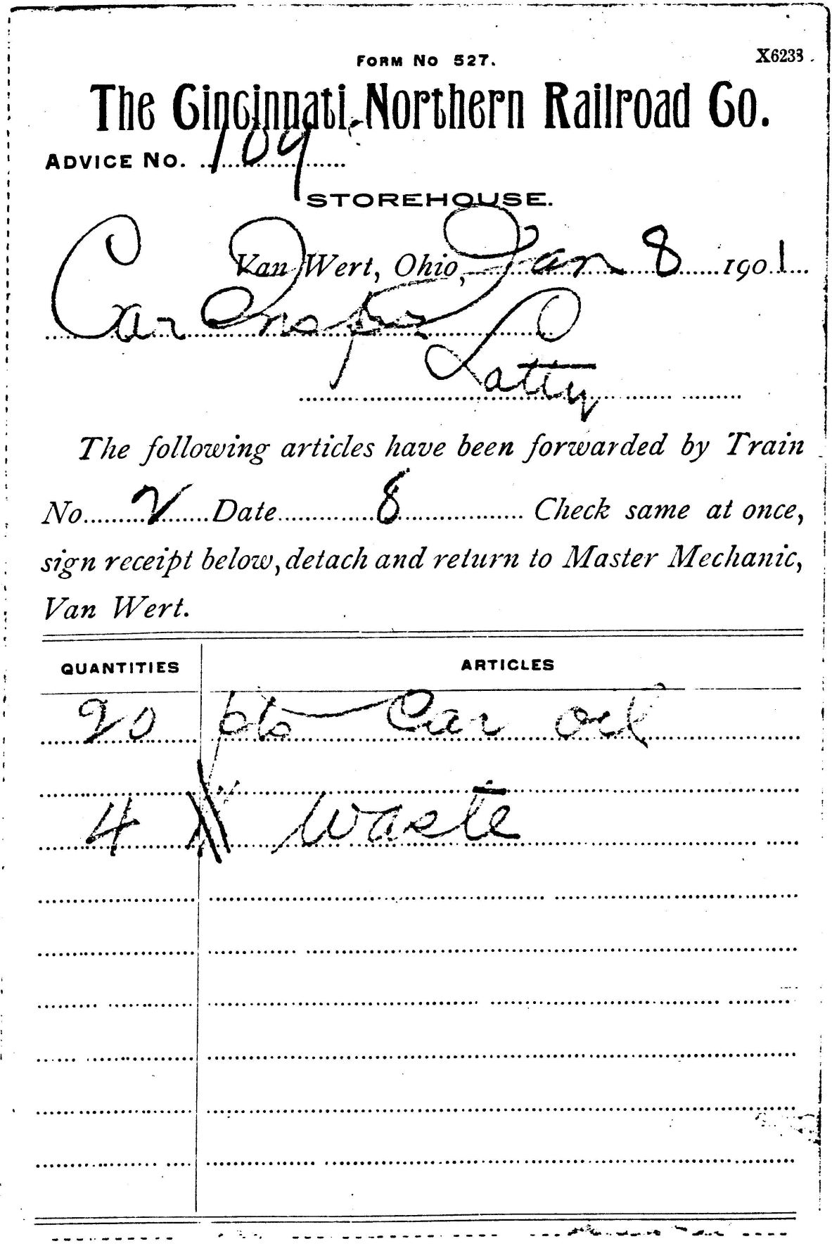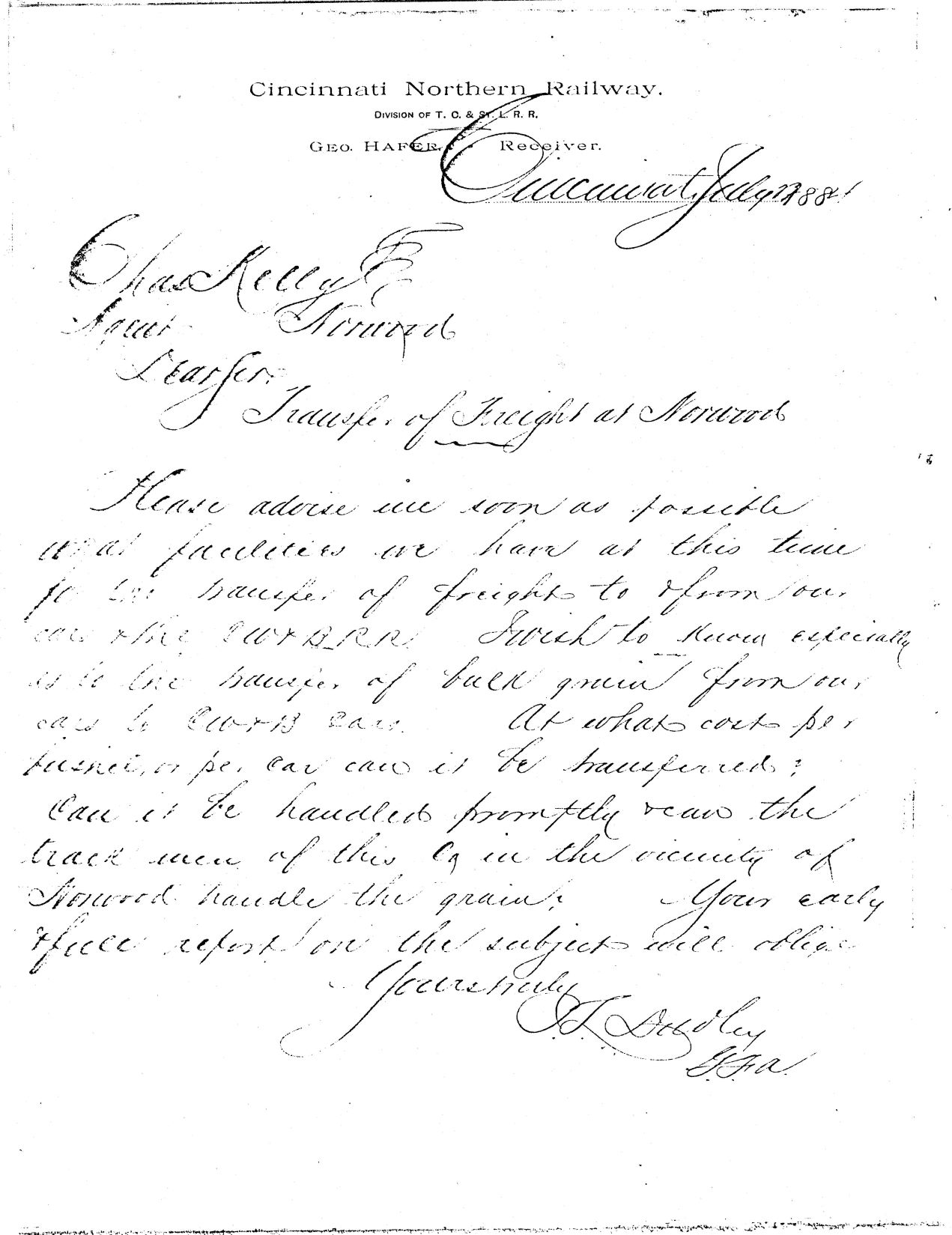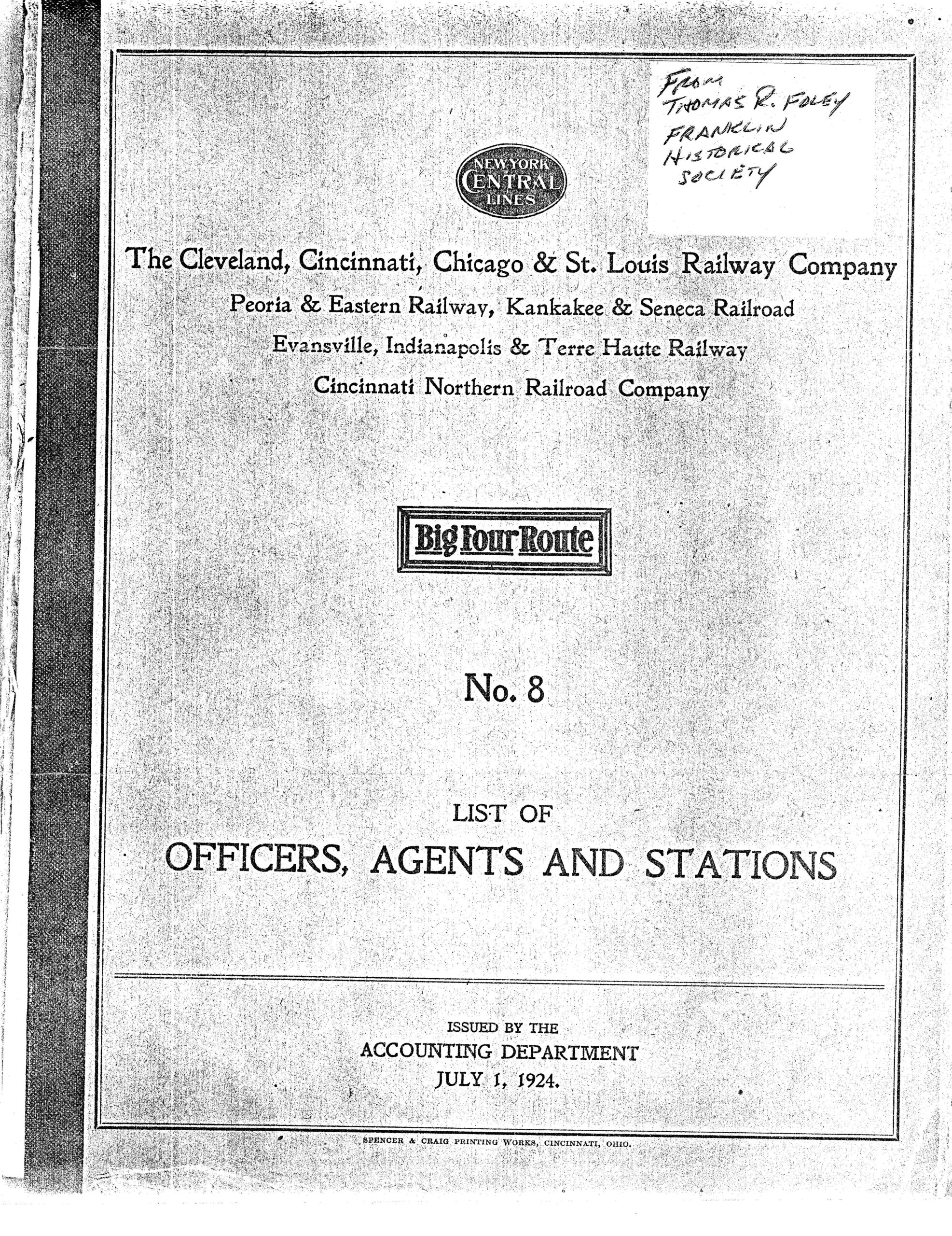 THE CINCINNATI NORTHERN RAILROAD STRUCTURES, SIDINGS, FACILITIES