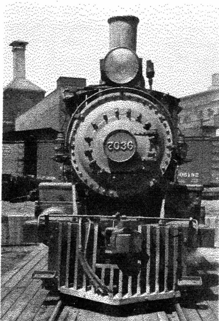 This road was formed in 1897 from part of the Cincinnati, Jackson & Mackinaw. In 1883 Brooks built five 4-4-0’s for the Michigan & Ohio, which later became C-61. The following year Brooks delivered eight Moguls for the same road. They later became E-60. One of these engines caused quite a stir up in Dunkirk, New York. Seems like it bore construction No. 1,000. Yep! their one-thousandth locomotive was turned out for the Michigan & Ohio. Now this event wasn’t going to slip by unnoticed. Red, white and blue crepe adorned all her handrails and beneath the headlight hung a picture of Brooks’ president. Her M. & 0. number was 26 but, for the moment at least, the huge number 1,000 graced her sand dome and tender. Seven of these Moguls were later assigned to the Detroit, Toledo & Milwaukee, then scattered to the Cincinnati Northern (4), Michigan Central (2), and one to the L.S. & M.S.