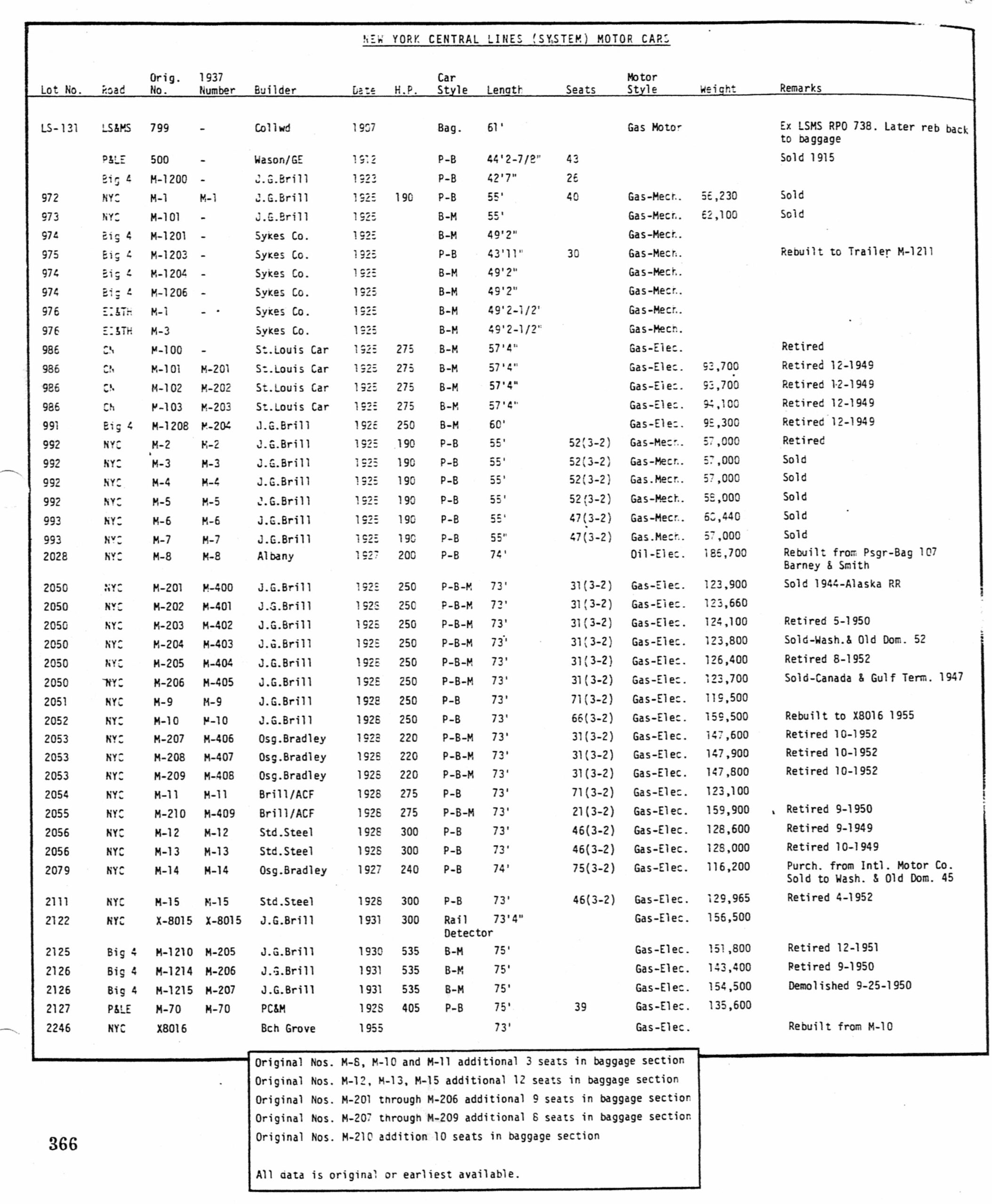 When branch line passenger service began to decline about 1930, some of these cars went to other New York Central routes including the Fort Wayne Indiana to Jackson, Michigan run on the Lansing division. Post 1937 renumbering photographs show the M-203 at Clyde, Ohio and the M-202 at Fort Wayne, Indiana.