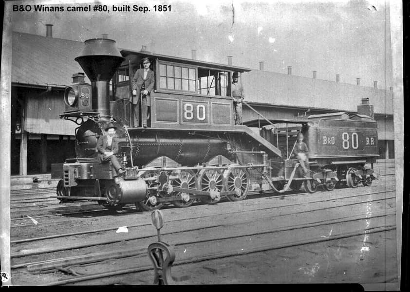 We’ve looked at and discussed camels and Ross Winans. This is B&O #80, an 0-8-0 Winans camel, built in 1851. I like that the pic shows the crew posing for the photo.