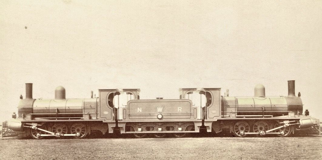 NWR is the British line North Western Railway. The NWR ended up the North West branch of the L&NWR, London & North Western Railway. I was curious about the classification of this locomotive. Is it two 0-6-0s back to back sharing a 6 wheel tender in between? Or is it one locomotive? I couldn’t find it listed on the L&NWR roster. I assume it’s two locos coupled to the same tender so that they didn’t need to be turned around for the return trip. But, did they run one loco one way and the other on the return? Or were both locos fired with coordination between the engineers and firemen?