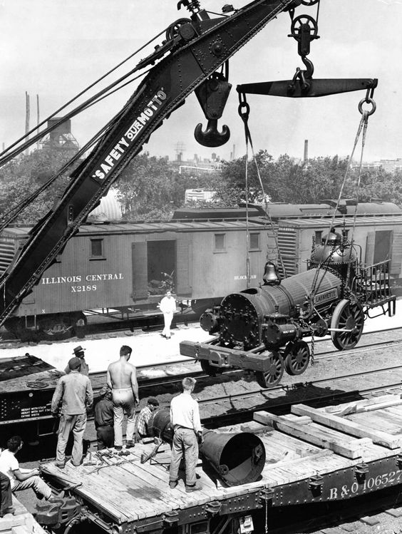 The locomotive is the B&O “Lafayette” built in 1837. The cab was open, and what you see behind the firebox is a simple platform with a guardrail on the sides. It had a small tender for wood fuel. This pic was taken in 1948 as it was being unloaded for display during the Chicago Railroad Fair. Note how the removed the stack and it’s sitting on the flatcar just in front of where the loco is being lifted.