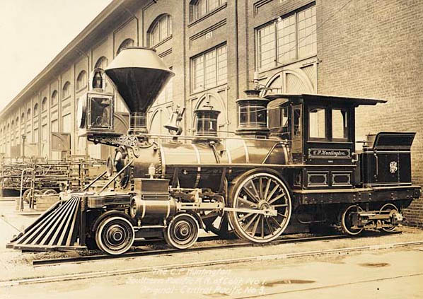 Now, I’m not saying that you’d necessarily find that little 4-2-4 loco on a lot of modelers’ wish lists; however, when looking at the pictures, most of us would say, “Yeah, I might enjoy having one of those. It’s kind of useless, but fun to look at!” SP #1 was named “C. P. Huntington.” The Huntington was built by Mason Machine Works in 1863. It was bought by the Central Pacific and shipped to San Francisco to aid in the western construction of the transcontinental railroad. It was named after the third president of the Southern Pacific Company, the parent company of the SP. When the SP absorbed the CP, the Huntington remained number 1 on the roster and performed light service in northern California. When it became completely obsolete, they stored it for a period of time. Renumbered 1001, it was brought out of storage and used as a weed burner in 1901. Unfortunately, it didn’t even work well as a weed burner and was put back in storage around 1910. But SP held on to it and would occasionally bring it out for ceremonies, often times running under it’s own steam. It now sits as a static display in the California State Railroad Museum. (See, something like that just keeps hanging around…for decades…centuries…)