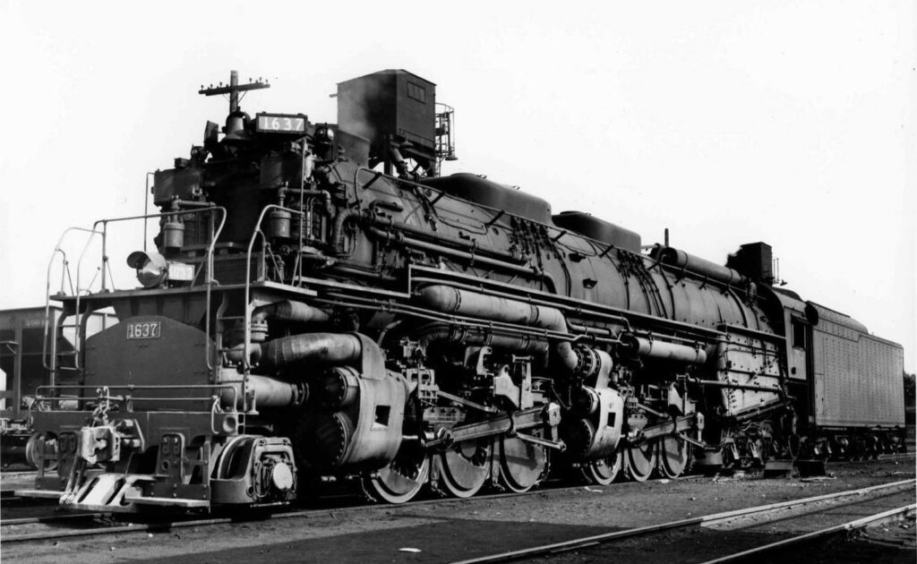 Oops! When I went to the Steam Locomotive website to find the “largest” locos, I looked at the articulated list and didn’t check back with the non-articulated list to see on how they ranked. For the most part, the articulated locos rank “larger” in most categories…except in power. There are two non-articulated locos that top out the power category: The PRR S-1, a 6-4-4-6 built in 1939, reaches 7,200 hp @ 100 mph. The PRR Q-2, a 4-4-6-4 built in 1945, generated 7,987 hp at 57.4 mph. There were (26) Q-2s built.