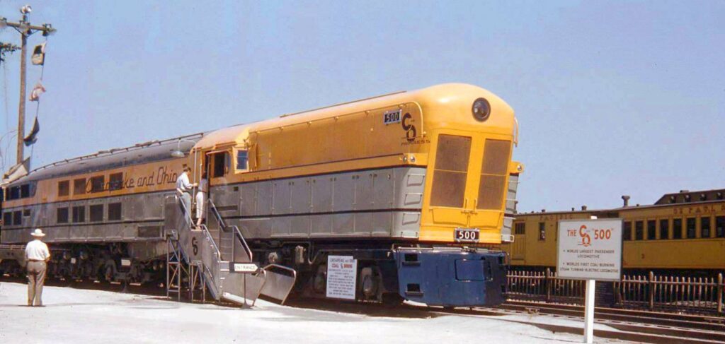 Moving to the longest steam locomotive, we go back to the “Jawn Henry” – 161’-1” total (first two pics). Second on the list is the C&O M-1 4-8-0-4-8-4, another steam turbine like the “Jawn Henry”. Three units were built (by Baldwin) in 1947 & 1948 at 154’ long. The M-1’s were supposed to pull the “Chessie”, but the “Chessie” was discontinued before the M-1’s were delivered.