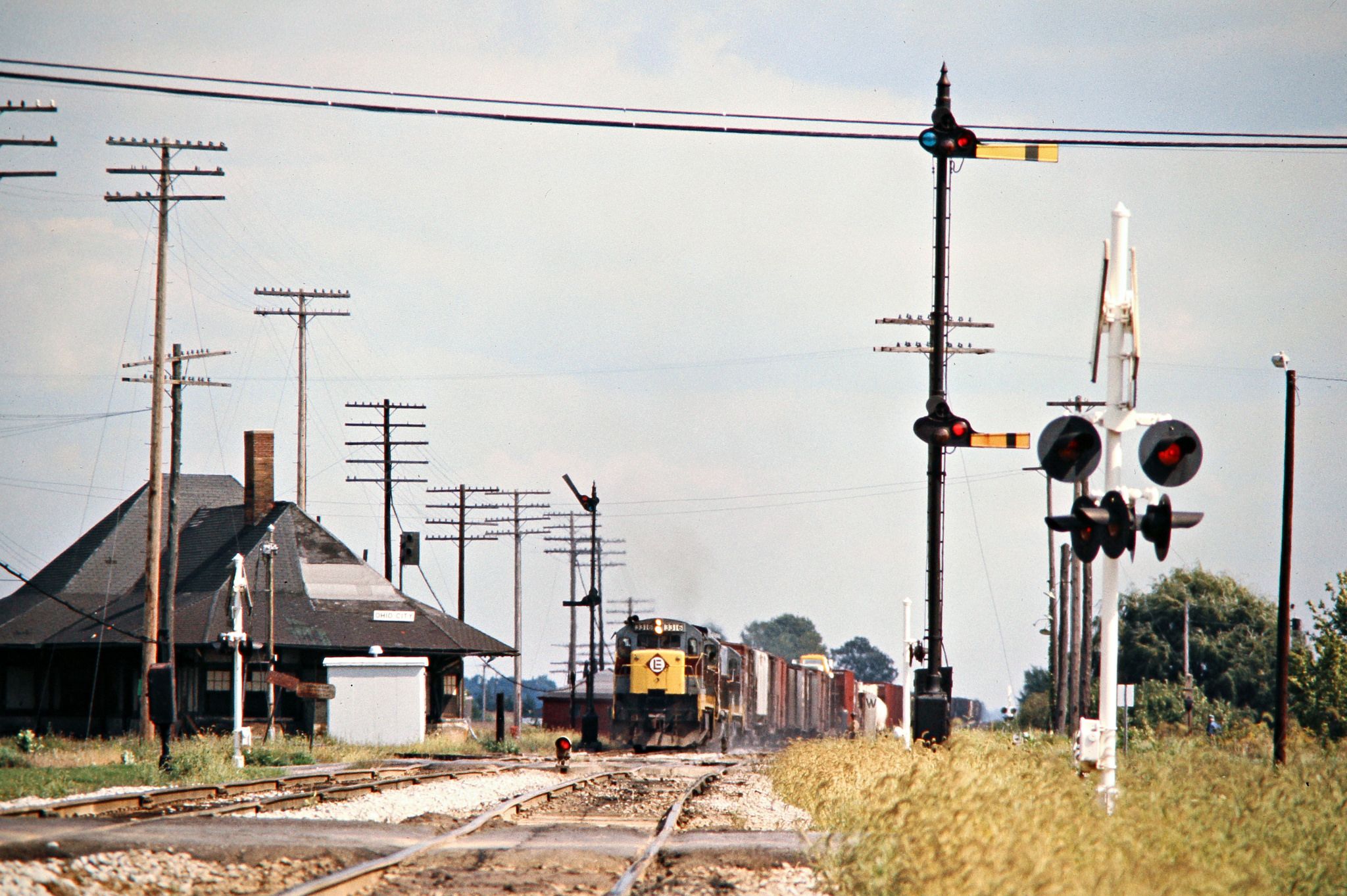 This shot is from the other side of the station along the Erie. It shows one of the interchange tracks veering off to the right of the Erie tracks, past the station, and to the Nickel Plate. This pic was also taken in 1975