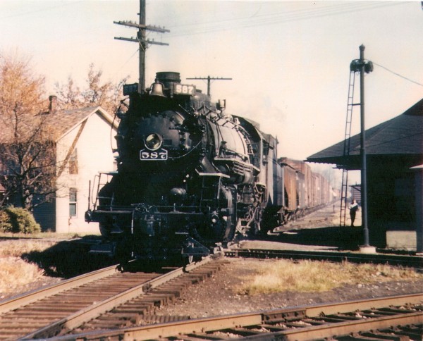 Here’s a pic of NKP #587, a 2-8-2 H-60, crossing the diamond with the CNor on the northwest corner of Union Station, 1952. The northern most Erie track just comes into view in the foreground. This pic shows how close the diamonds are.