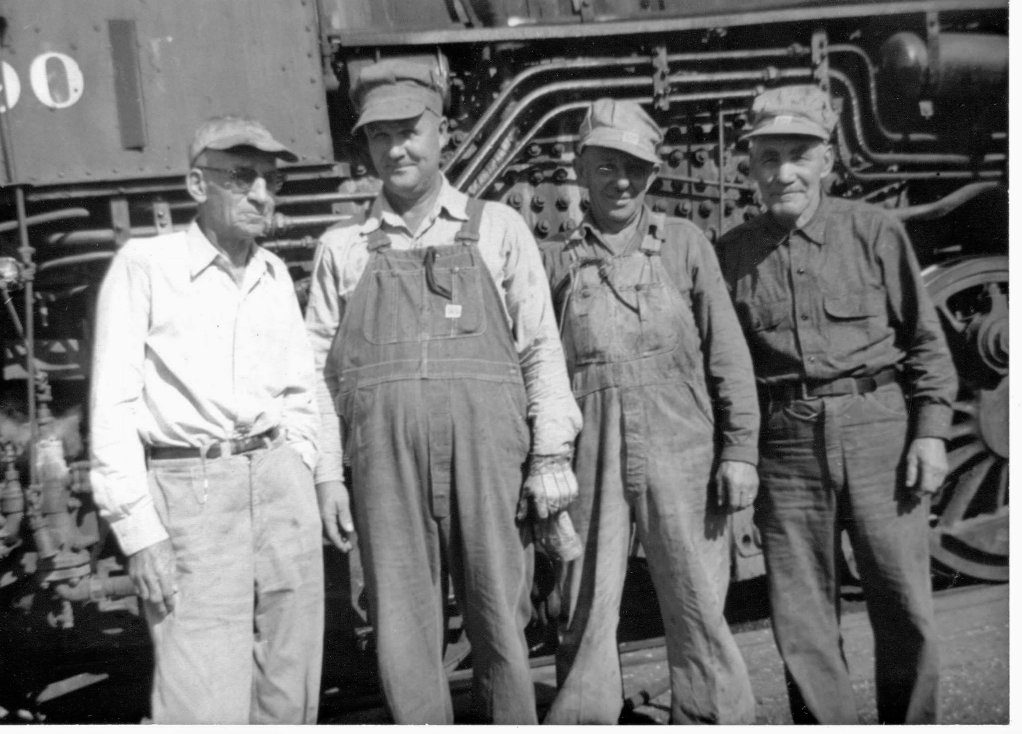 Going back to the roundhouse, late ‘40s to late ‘50s, here’s some of the roundhouse crew (NYC employees): L-R, George J Gunn, Roundhouse foreman, John Roby, Orley W. Putnam, and Robert A. Thomas.