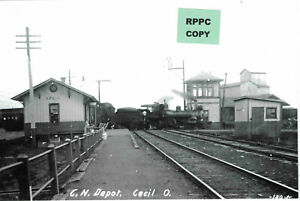 I threw this pic in because it’s another interesting pic for our club – It’s labeled as the CNor Depot (CN in this era) and tower at Cecil, OH. The double track going by the station is the Wabash. The American loco is pulling a passenger train south on the CNor. Check out the grain elevator in the background.