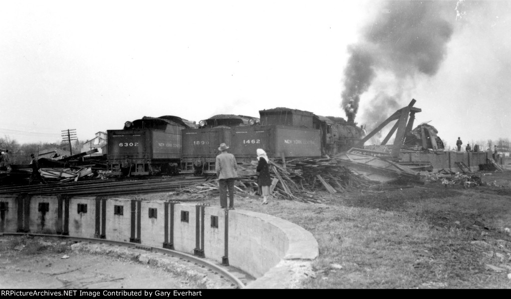 This is a fascinating photo of the Ansonia roundhouse after a tornado took it down in March 1955. Three NYC Mikados look essentially untouched as the roundhouse around them is completely demolished. The loco to the right is #1492 with a head of steam already worked up. The far left one is #6302 (I think an H-6a), and the middle one is #1890 which references show as an H-6a. Since Ansonia facilities were located on the East/West NYC and serviced both the East/West line and the CNor, I don’t know if #6302 or #1890 ever worked on the CNor.