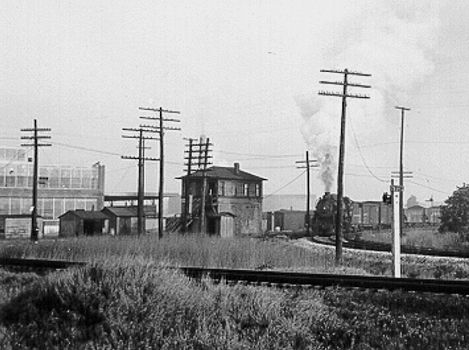 This is a 1940’s photo of “OD” Tower, south of downtown Jackson. The locomotive is #1700, a Big Four class H-6a Mikado which was typical of CCC&StL power of the day. The train is going from west to south, from the Michigan Central Air Line branch onto a short stretch of NYC Jackson Branch, before heading down the Big Four’s own CNor branch through Hudson and Bryan, Ohio. [Jim Tarbell, Doug Leffler collection] There were quite a few NYC & CCC&StL Mikados servicing the lines out of Jackson. But, only a small percentage ended down the CNor line. Again, this presents one of the problems of identifying the CNor roster during this period. I can say that #1700 serviced the line (more than just running the interchange tracks), because I have a blurry pic of it getting water in Van Wert in 1939.