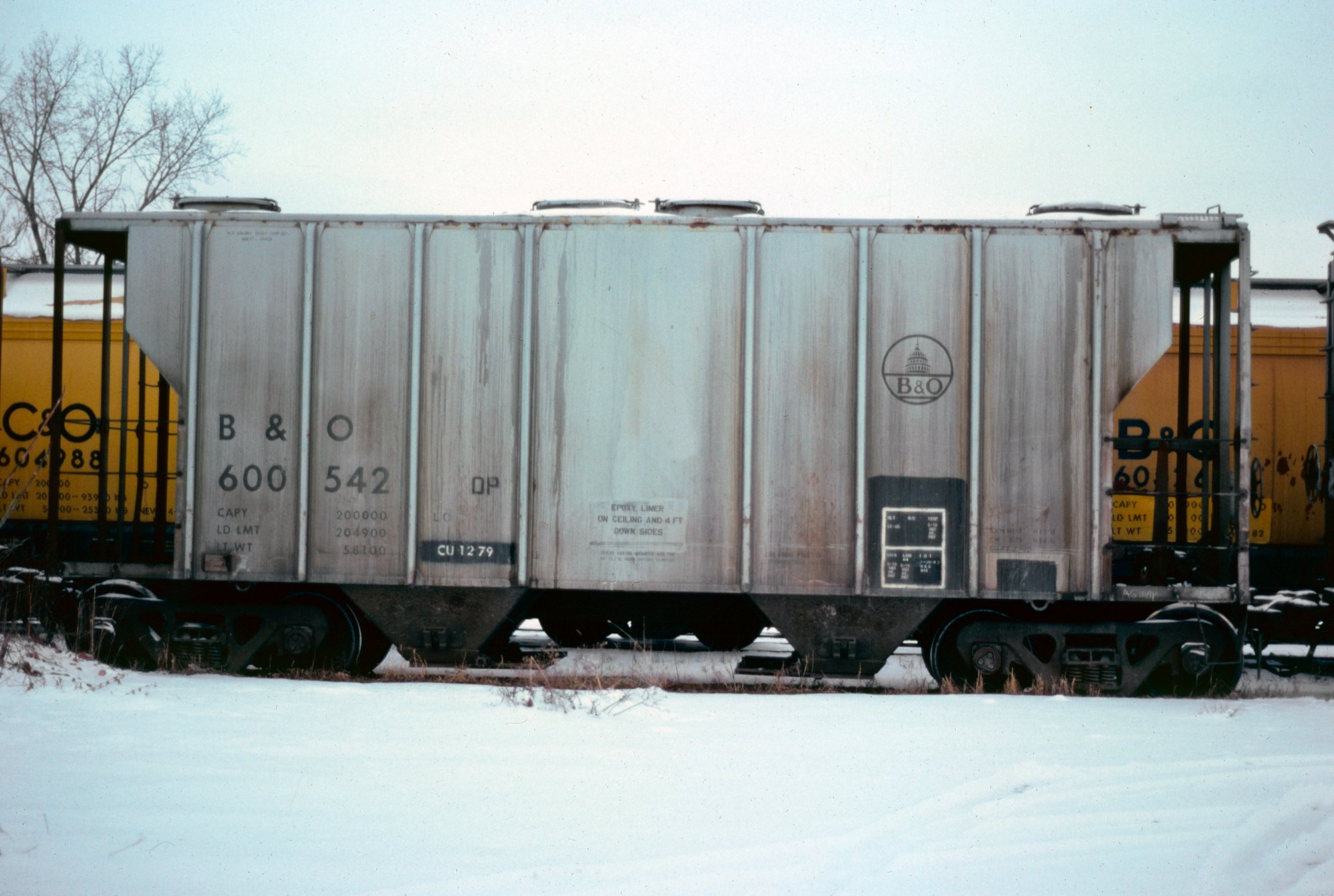 Here’s a New Haven cement hopper in the late 1960s. The built date appears to be 1949 – it appears to be the same make as the Southern one above. Again, check out the square hatches – a sign of a ‘40s built hopper for cement service. This photo was taken by the late Jack Alexander.