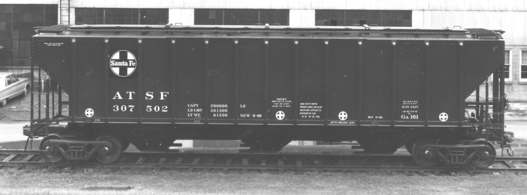 ATSF #307502 was a 3-bay built in ’66, had a 100 ton capacity. These grain hoppers had liners, but didn’t have to be lined against corrosive materials like the ceramic liners. If I’m reading the data correctly, this had a urethane liner.
