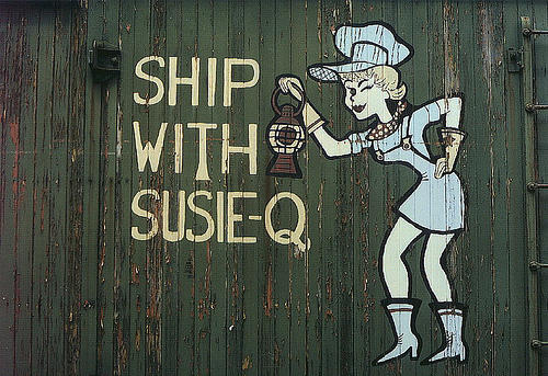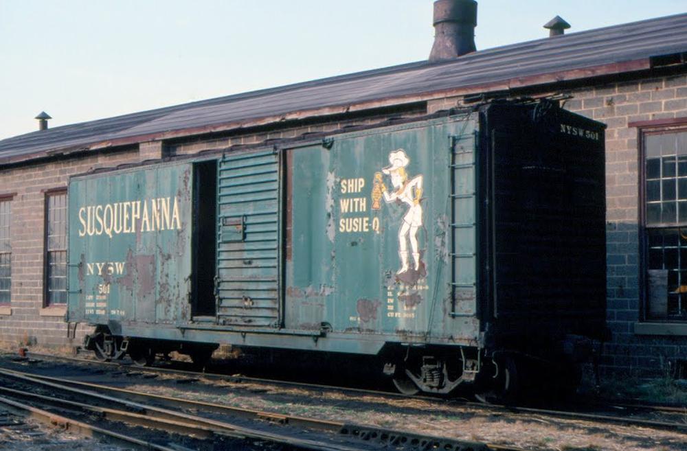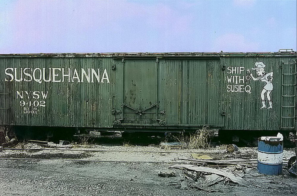 I found this series of pics starting with a Pinterest pic, where a model railroader was asking when the Susie-Q logo was used. The wood-sided boxcar makes the situation confusing, the logo was introduced in the mid ‘60s – the wood-sided car must have still been in service and was repainted.