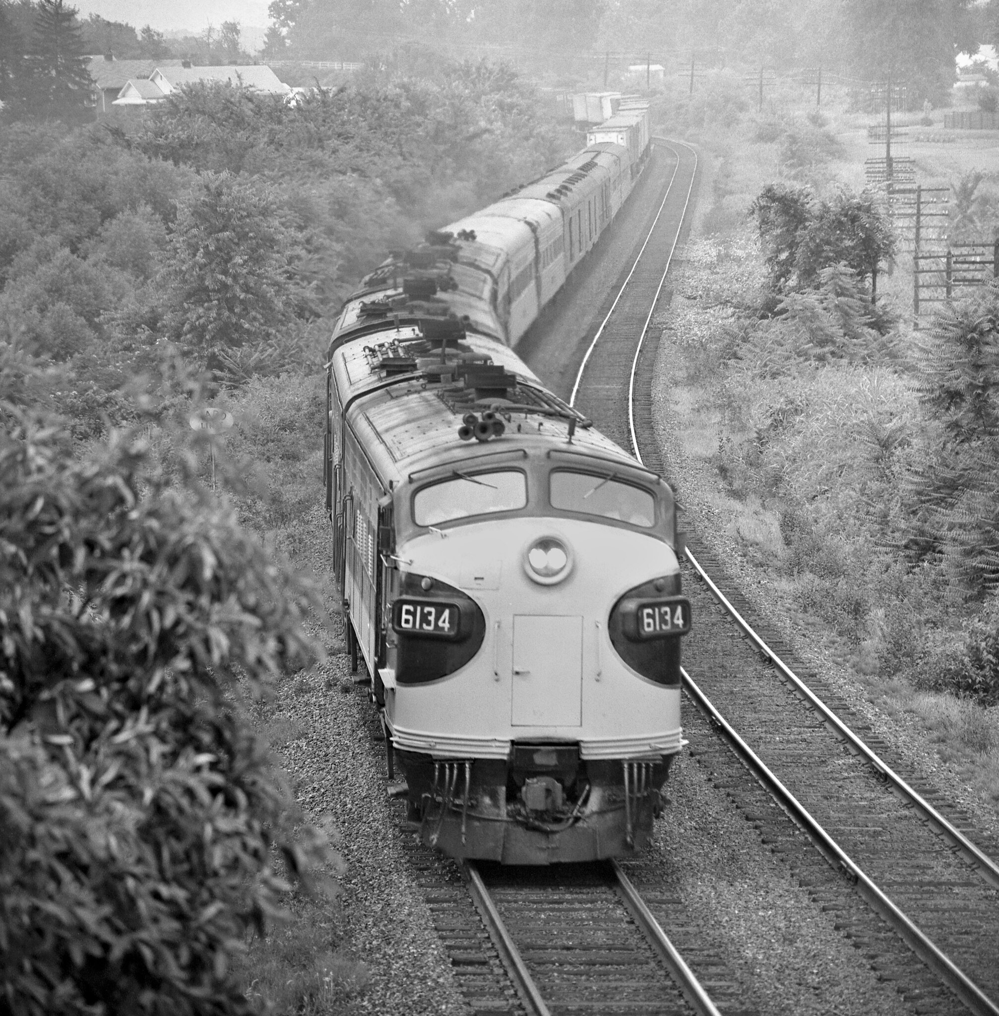 …And another from J. Park Lamb – Washington-bound SOU passenger train #76 leaves Greensboro, NC with a cut of TOFC loads in 1966. Photograph by J. Parker Lamb, Center for Railroad Photography and Art.