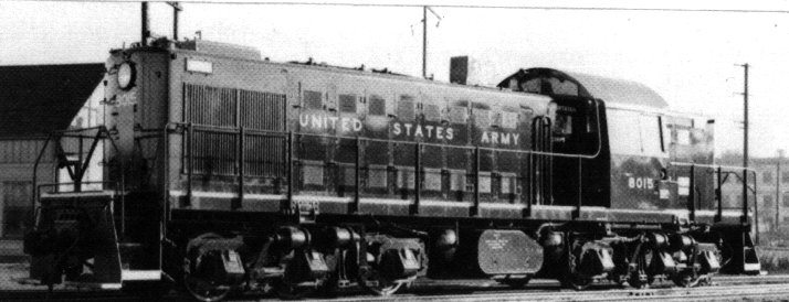 Going further into the history of the RS-1s, the first 13 units were built in 1941. Five railroads had put in orders for those units, but before they could be delivered, the army requisitioned them for the war effort. The thirteen units were immediately sent back to manufacturing for a significant modification. The 2 axle trucks were replaced with 3 axle trucks where all 3 axles were powered (a C-C truck arrangement in lieu of the B-B). Hence, the RSD-1 was created. Here’s USA/TC RSD-1 #8015 at Stockton in California in 1948 (Photo: H.L. Goldsmith)