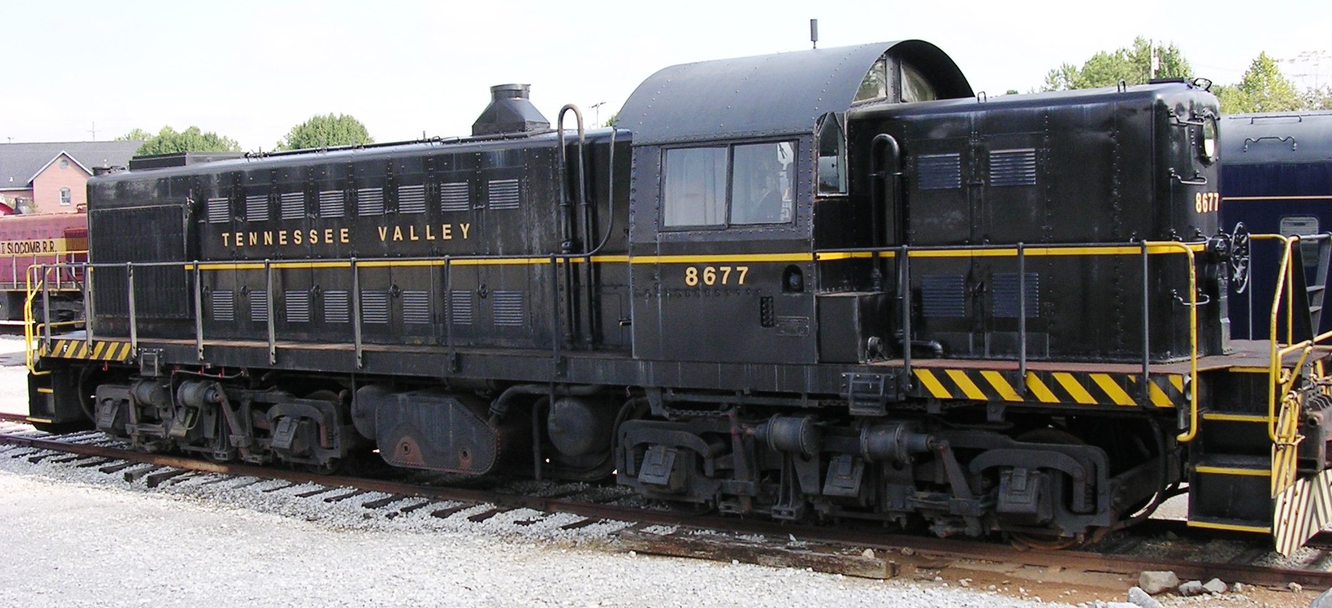 The RSD-1 accomplished two improvements: 1) more tractive effort, and 2) less weight per axle (for use on lighter rails). At the same time, the 1,000 HP was spread over 6 motors/axles in lieu of 4, so speed and acceleration decreased. Here’s a pic of former US Army ALCO RSD-1, now owned by the Tennessee Valley Railroad Museum. Note, as Monty brought up in his clinic, the middle axle is slightly offset to one side to make room for the center axle moto