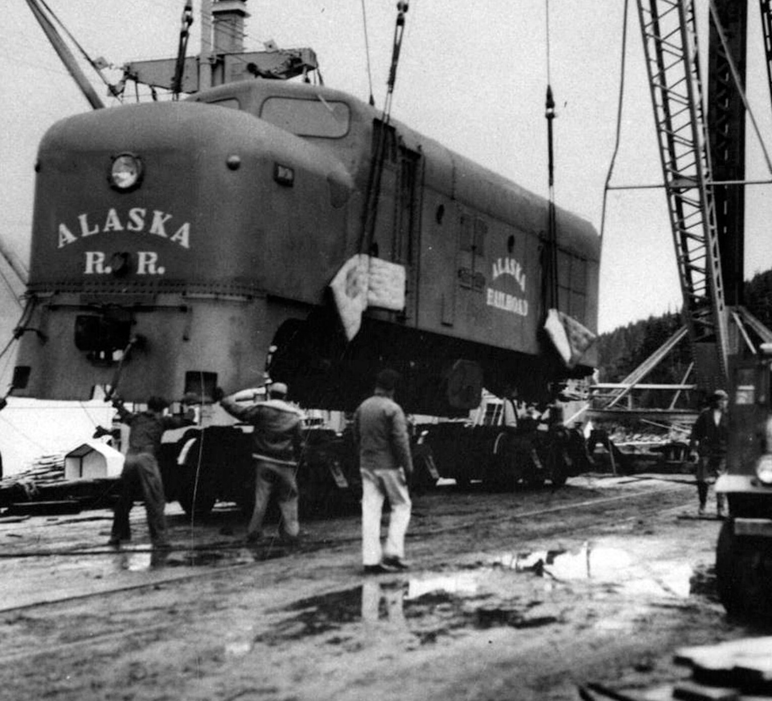 Trying to get a little closer to topic, I checked out the Alaska RR RS-1s and found this pic of #1001 and #1000 MU’d like the typical PRR units – back to back. The caption read, “Pictured is ARR RS-1 numbers 1001 and 1000. Photographer Ken Reuben writes, ‘I rode the ARR in April 1945 from Whittier to Anchorage. We were on a three day pass and due back on a Saturday. There was no train to Whittier on Saturdays, but a special was coming down with girls for a dance. Unfortunately, F.D.R. died the day before and the dance was cancelled. So we were AWOL, didn’t get back till Monday.’ Whittier, Alaska, 1944-45.”