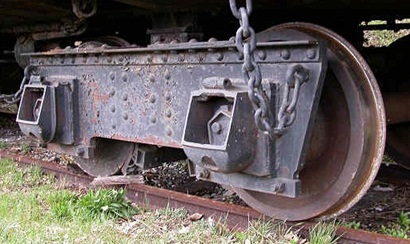 So…predating the Andrews were the Archbar trucks. This pic shows Pickering Lumber #2 being restored. There’s definitely archbar trucks, but the spring mechanism cannot clearly be seen – maybe a leaf spring, but doesn’t look like one I’ve seen before! Archbars first appeared around 1890 and were still being built in the ‘20s. They were banned from interchange in 1940. But of course you could still find them on MOW equipment, and on railroads that didn’t interchange portions of their rolling stock such as logging companies. Maybe the odd look around the springs is because of the restoration – the springs have been removed and the trucks temporarily blocked.