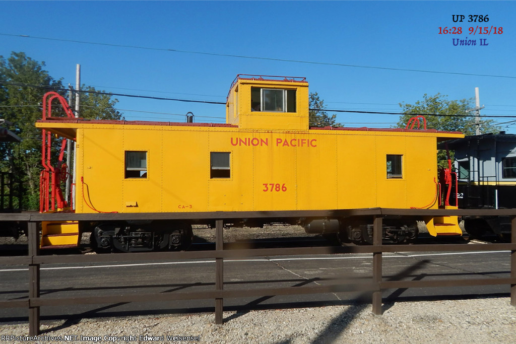 This is UP #3786, a steel caboose class CA-3, built around 1942, rolling on Type Q trucks. UP used the Type Q trucks on caboose classes CA-3 thru CA-10.