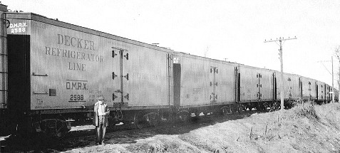 A little research shows that there were two Decker meat packing companies: Jacob E. Decker Packing in Mason City, Iowa; and Val Decker Meat Packing in Piqua, Ohio. Both companies ended up as major independent meat packing companies. As far as I can tell, the reefer fleet was for the Iowa plant. BTW – for our Germantown meat packing plant, the Val Decker meat packing plant in Piqua, OH is about 30 to 40 miles north of Germantown. We could easily justify our fictitious meat packing plant to be a Decker facility (??). And it sounds like we don’t have to deviate to Decker reefers since they were for the Iowa based company. …A bit off topic, below is a colorized photo of downtown Piqua, OH, around 1901. The carriage on the left belonged to Val Decker Meat Packing.