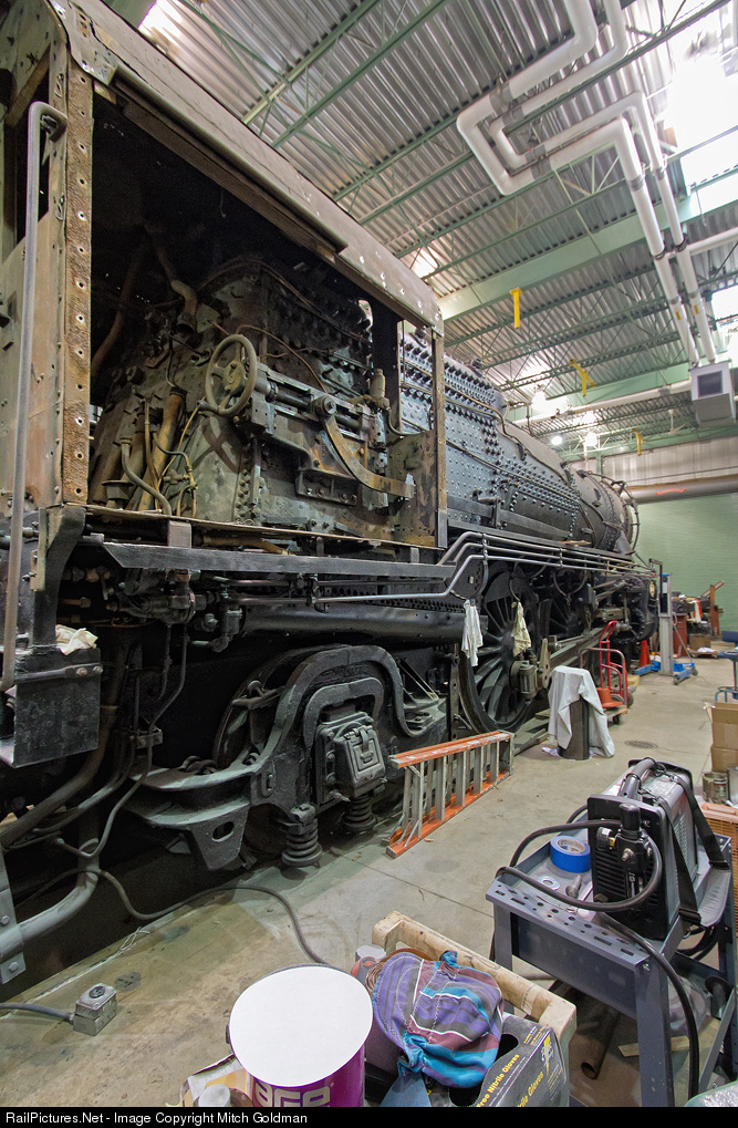 I picked up this photo of a Canadian Pacific (possibly #5442) in the shop being overhauled. Assuming this is CPR #5442, it was a P2j class 2-8-2 built by Montreal Locomotive Works in 1944. CPR began ordering the P2 class Mikados in 1921. They were designed as a heavier more powerful Mikado than their class P1 Mikes. Subclasses “a” through “k” showed the upgrades from the early ‘20s to the mid ‘40s. The P2j was the second last of the subclasses and represented some of the most modern and most powerful Mikados ever built. You can see the streamlining along the sides (for a freight loco!). Note the Elesco feedwater heater on the top of the smokebox. The P2 class stayed with Walshaerts valve gear through all subclasses. CPR ran the P2 steamers a bit longer than their USA cousins – most of these ran well into the late ‘50s, and some into the early ‘60s.