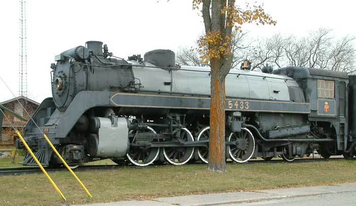 Here is CPR #5433, class P2h Mikado. There was no subclass “i”, so #5433 was the subclass previous to #5442 and sports most of the same features including the streamlining and Elesco feedwater heater. Someone had asked the other day about closing in the cab – CPR was one of the few railroads that ran enough in severe cold weather that the cab was enclosed. These were nice looking locos with a great paint scheme – especially for freight locos.