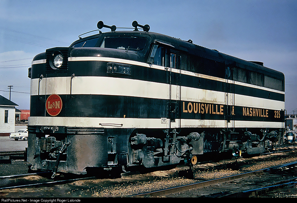 I found this photo with what appears to be an odd L&N paint scheme. Turns out that L&N #335, an Alco FA2, was purchased from the Lehigh & New England on the used loco market. The photo was taken in 1963 – the year the L&N purchased #335. So it’s sporting the L&NE paint scheme with a quick update with the L&N logo and yellow block lettering. #335 serviced the Cincinnati area (home), even thought the photo was taken in East St. Louis. The photo is part of the Roger Lalonde collection.