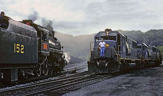 Ron Flanary also gives us this pic with modern L&N #8542 meeting past era L&N #152. Ron writes, “This pic was taken late in the day on Saturday, October 11, 1986 at Loyall, KY. The steam locomotive, L&N 152, had just returned from an all-day round excursion to Appalachia, VA. The trip was sponsored by the Kentucky Railway Museum (owner of the engine, and virtually all the passenger cars in the train), and I was one of the local folks who helped line all this up. The Harlan Chamber of Commerce actually sponsored the excursion and sold tickets—and I recall the entire train sold out in less than a day (600 seats). I rode the engine both ways, and we stopped here to allow KRM’s volunteers back on the rear of the train to unload some passengers who had ridden the short distance from Harlan back to Loyall. The three SD50s on the right would be taking a coal train south toward Erwin after we cleared up. Number 152 was built by the Rogers Locomotive Works in Patterson, NJ in 1905, and the three SD50s were built by GM’s Electro-Motive Division (EMD) at LaGrange, IL in 1983. Quite a contrast in technology! It’s a shame CSX wouldn’t allow an operation like this today—but the management and legal attitude from Jacksonville changed dramatically not long after this. Now, there’s no way in God’s green Earth they would even allow a steam locomotive on the property—not to mention all those passenger cars with ‘non-compliant’ roller bearings.”