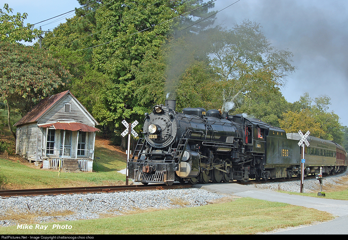 Here’s a modern high-quality photograph of Louisville & Nashville steam 2-8-2 #1593 at Rock Spring, Georgia, 2019.