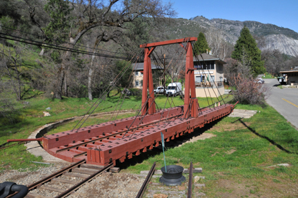 Here is a pic of the turntable with the Bagby station in the background. Bagby was the town prior to arriving at El Portal. The Bagby station was moved and restored in El Portal next to the turntable. There was a similar turntable in Bagby which was too far deteriorate for restoration. So parts from the Bagby turntable were used to restore the El Portal turntable.