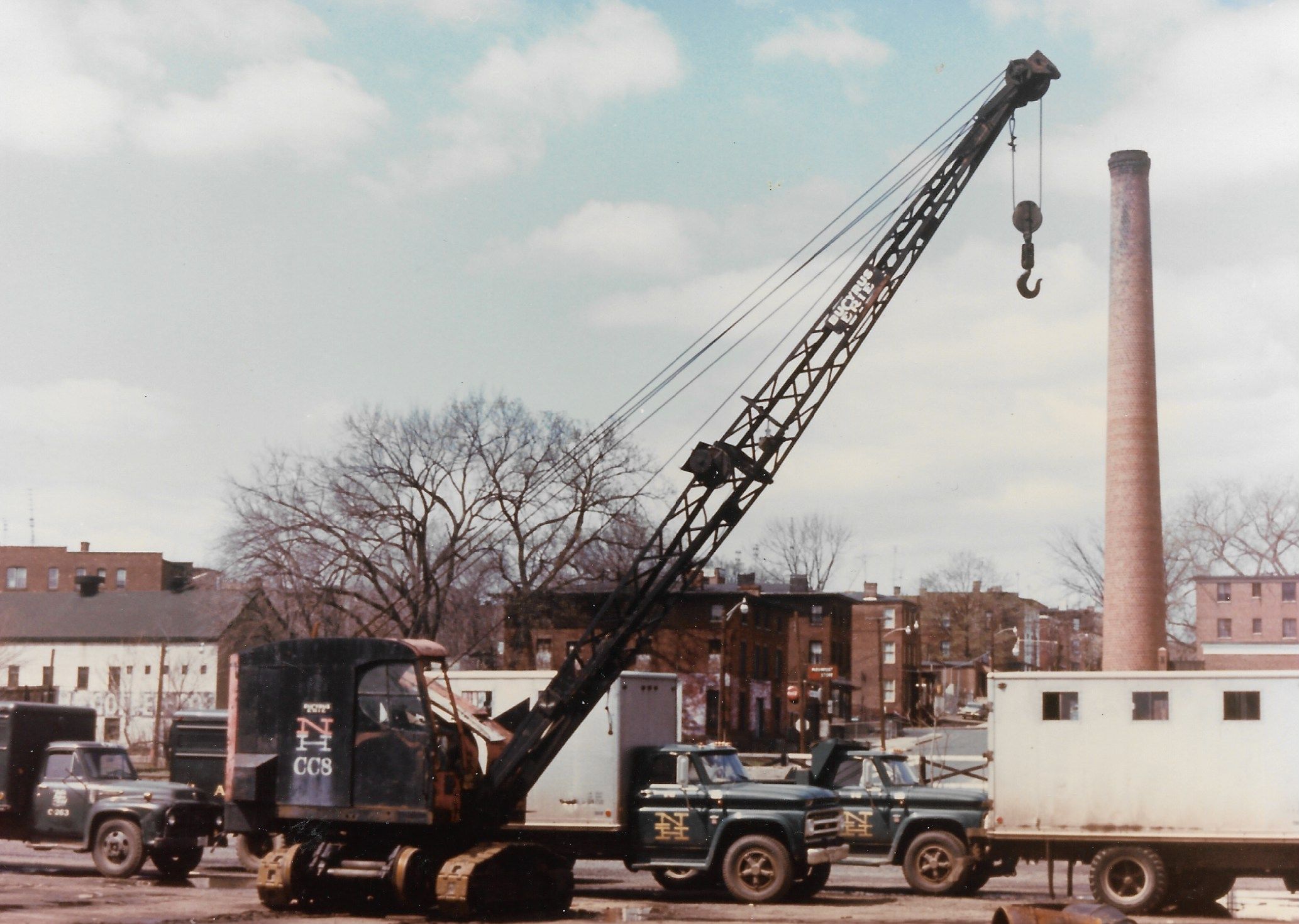 Cranes are always an important and a desired (by MR’ers) piece of equipment for the MOW track. New Haven #CC8 is a lighter crane. Note the wheels lift to allow the crane to move on its tracks. This pic was taken in 1967 at Hartford, CT.