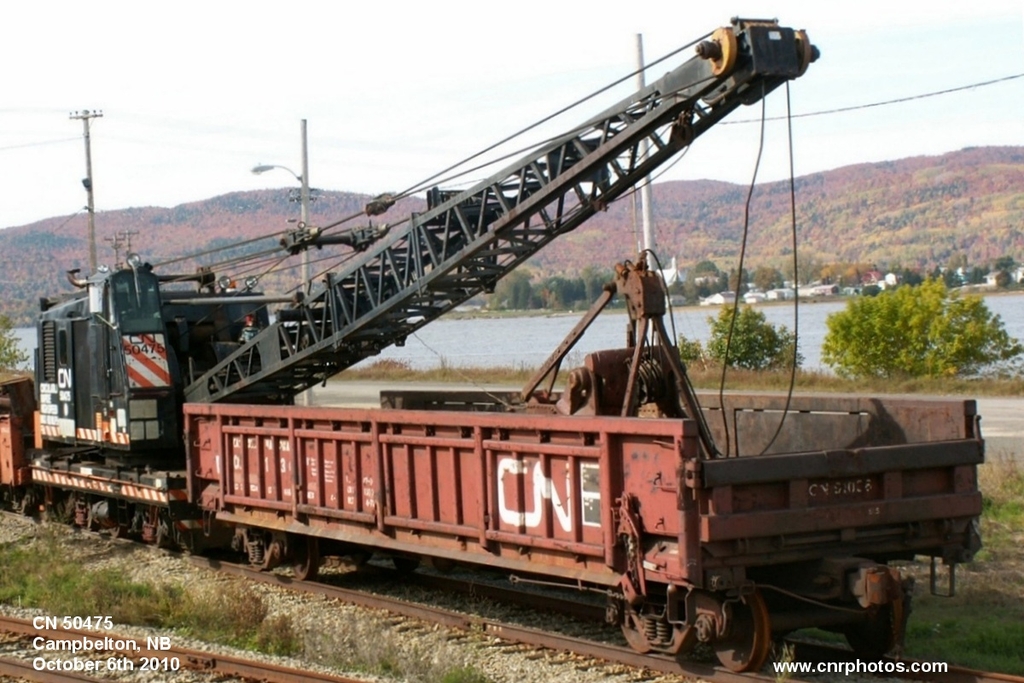 I could tell you about CN crane #50475, but what I was looking to show in this pic was a nice derrick car/gondola.