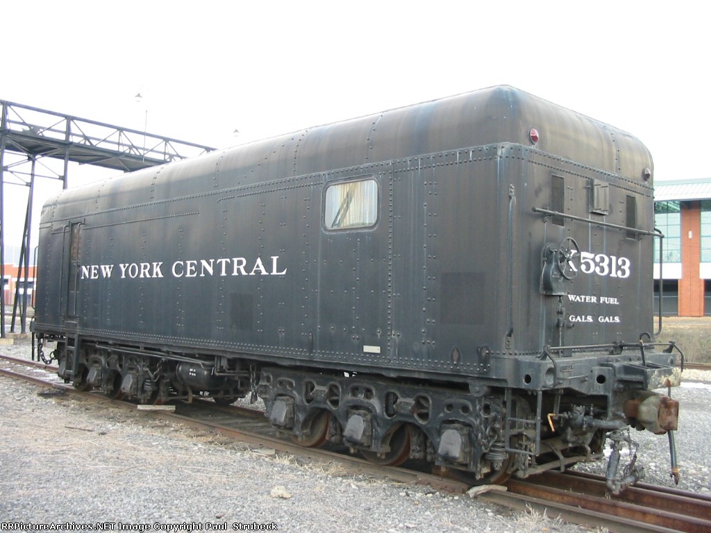 NYC #X5313 is shown as MOW equipment in this 2005 pic. This steam generator was once a tender that belonged to New York Central #5313 – a J-1d class Hudson, 4-6-4. The engine was sold to the TH&B who later performed this conversion on the tender for MOW service. Note the door and window cut into the sides, and the new top. You get a great view of those heavy duty 3 axle trucks.