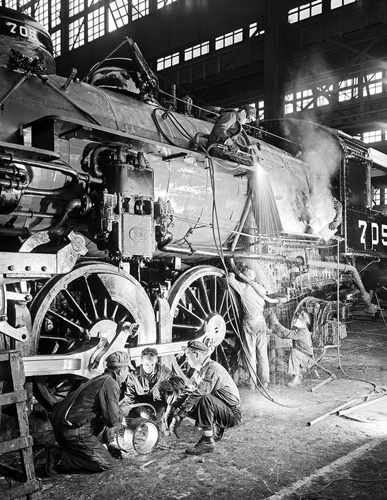 I’ve been wanting to do this topic for several years – railroad crews. The idea being that while the equipment is important, it was the crews that made the railroads operate. It’s a tough topic to research – it seems that you always run into good pics of crew members, but to get a whole batch together that tells a story is a bit tougher. Many of the pics you find are part of collections – sometimes art or poster collections. My apologies for not recognizing all the photographers and people in these photos – these were all taken directly off of Pinterest. Today, most of the captions are taken directly from the photo captions – no need to tell more than the pic with its caption.