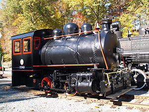 This 1934 Orenstein & Koppel 0-4-0 was built in Germany for use in a cement company. Imported to the US after WWII it wound up at the Loon Mountain ski area. It is normally only in operation during the winter and is actually used for transportation, taking skiers between the gondola and the quad lift chair. It is seen here during a rare non-winter run.