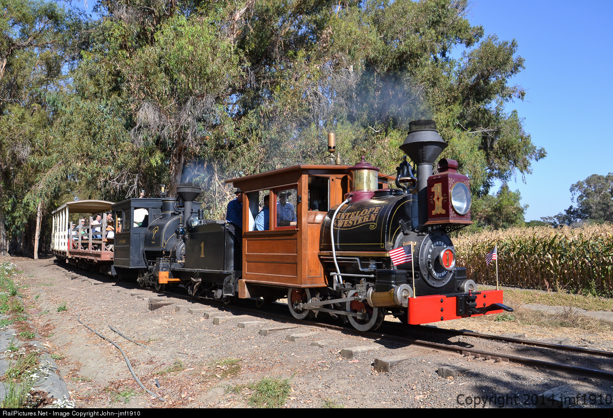 Antelope Western 1, built in 1889, leads the last train of the day back towards the train shed. The crew decided to have some fun and run a double header for their final run of Labor Day weekend. The Society for the Preservation of Carter Railroad Resources restored this section of track originally built by the Southern Pacific Coast Railroad in the late 1800s. This narrow gauge railroad once stretched from Alameda to Santa Cruz.