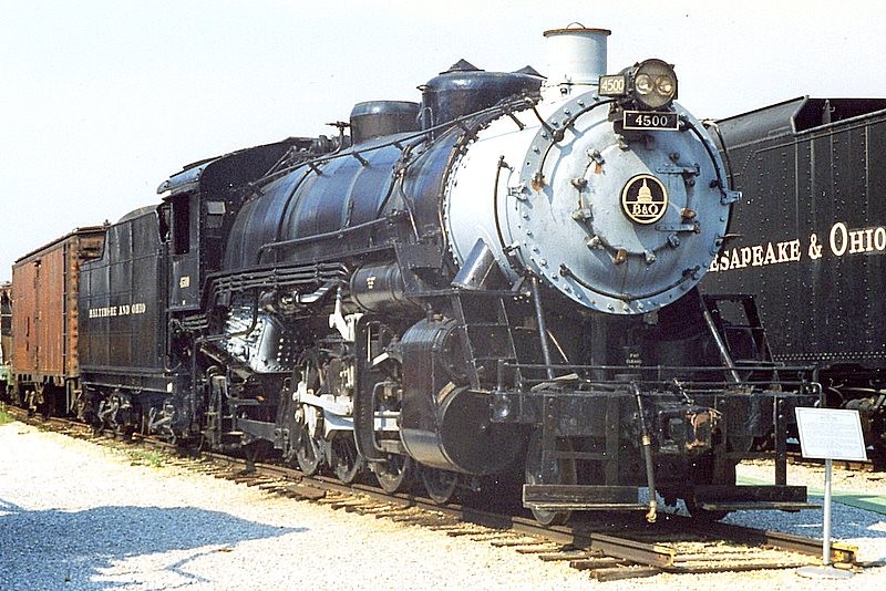 Here’s B&O #4500, the first of B&O’s USRA Light Mikado’s, parked at the B&O museum in Baltimore. These were B&O Class Q-3’s (Class Q was a Mikado, and subclass 3 designated the USRA standard Mikado’s).