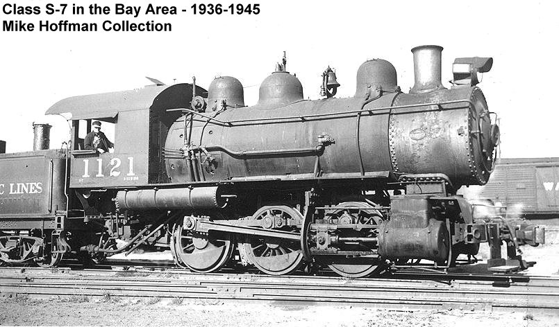 SP #1121 was an 0-6-0 switcher Class S-7. SP put the 0-6-0s in Class S with the 7 representing the subclass.