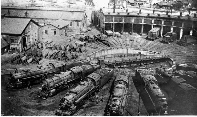This pic gives us a view of the Nickel Plate roundhouse and maintenance shops in south Lima. The NKP Lima shops helped keep the Nickel Plate running during the busy years of World War II.