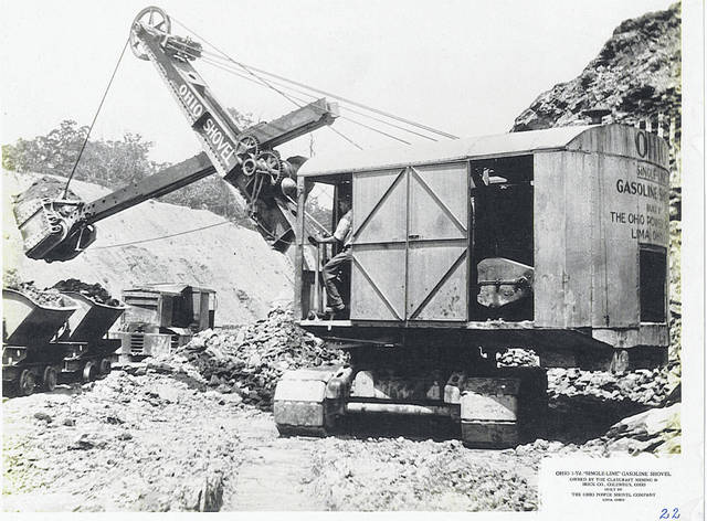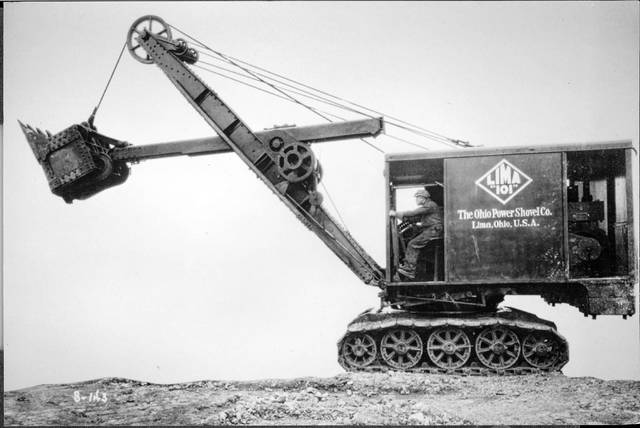 But the construction equipment branch of Loco didn’t start with the last of the steam locos. Here’s a 1928 photo of a Lima shovel accompanied by George T. Wright in front of his 224 S. Cole St. home, with Len Faurot at right. This was one of the first powered shovels built at Lima.