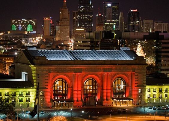 found a whole set of holiday photos of the Kansas City Union Station – here’s a couple. A cityscape of Union Station and downtown Kansas City, MO lit up for Christmas.