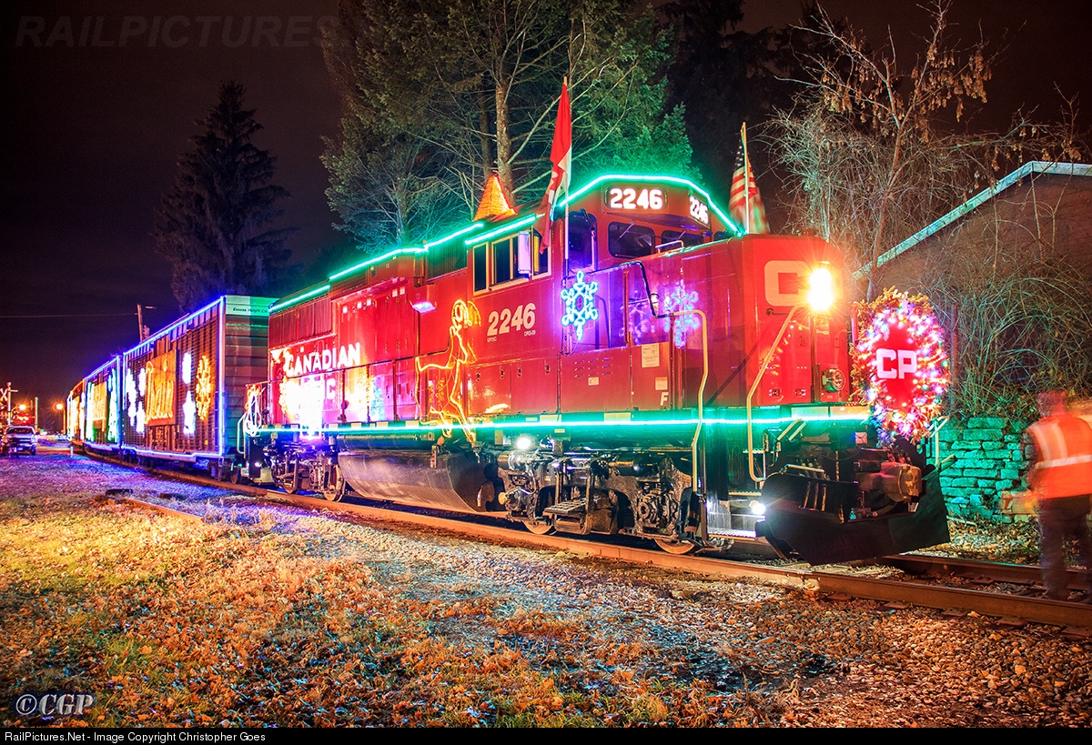 “For the first time, the Canadian Pacific Holiday Train takes over the Colonie Main since CP no longer owns the south end. Here is the CP #2246, and EMD GP20C-ECO, leading the Canadian Pacific Holiday Train, a great way to start off the Holiday Season!” (This is from November 28, 2015 – but just as cool today.)