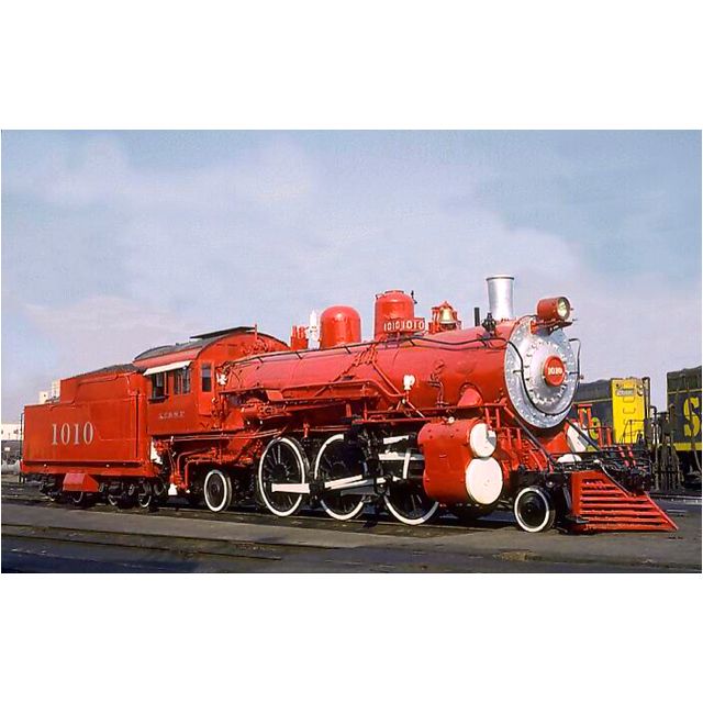 Again – not a lot of info with the pic, but I think this is AT&SF #1010. I’m not sure when they painted it bright red, but whether this is a holiday photo or not, a bright red loco fits well.