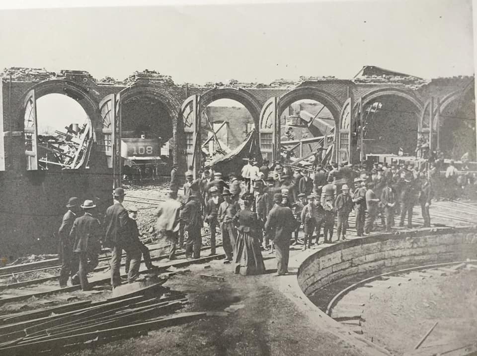 Check out the pic of the roundhouse again – It doesn’t show any evidence of a second locomotive in the stalls captured. Though I doubt it, maybe #108 was the one that blew (and it was rebuilt and restored to service). Or maybe I’m missing a loco. (?)