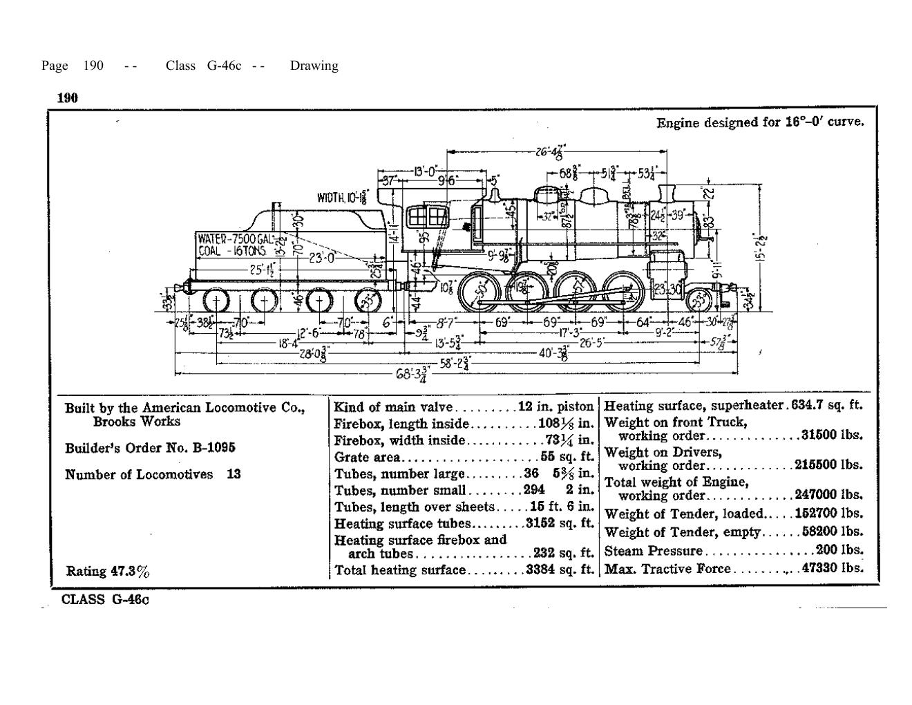 There were a couple of Class G-46c’s that made it to the CNor, NYC #5887 & 5891. These were built by Alco-Brooks in 1907, a few years prior to the G-46g’s. I don’t have any pics of them, but I have this diagram of the NYC Class G-46c. I don’t know whether they ran with these tenders, or the tenders shown with the G-46g. These two locos found their way to CNor track in 1917 and were scrapped in 1932. We have a club owned, framed photo of a CNor Consolidation with arched cab windows – it could be of one of these two.