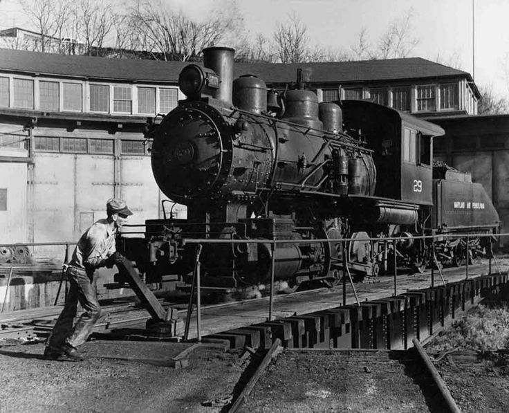 Maryland & Pennsylvania 0-6-0 switcher, built in 1903, at the Baltimore Roundhouse. (An Armstrong turntable!)