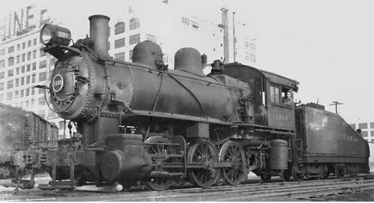 PRR (B8 class) 0-6-0 switcher steam engine #1109 and slopeback tender was built 1910-1911 at the Altoona PA shops. Photo was taken in the Long Island City yard in 1946.