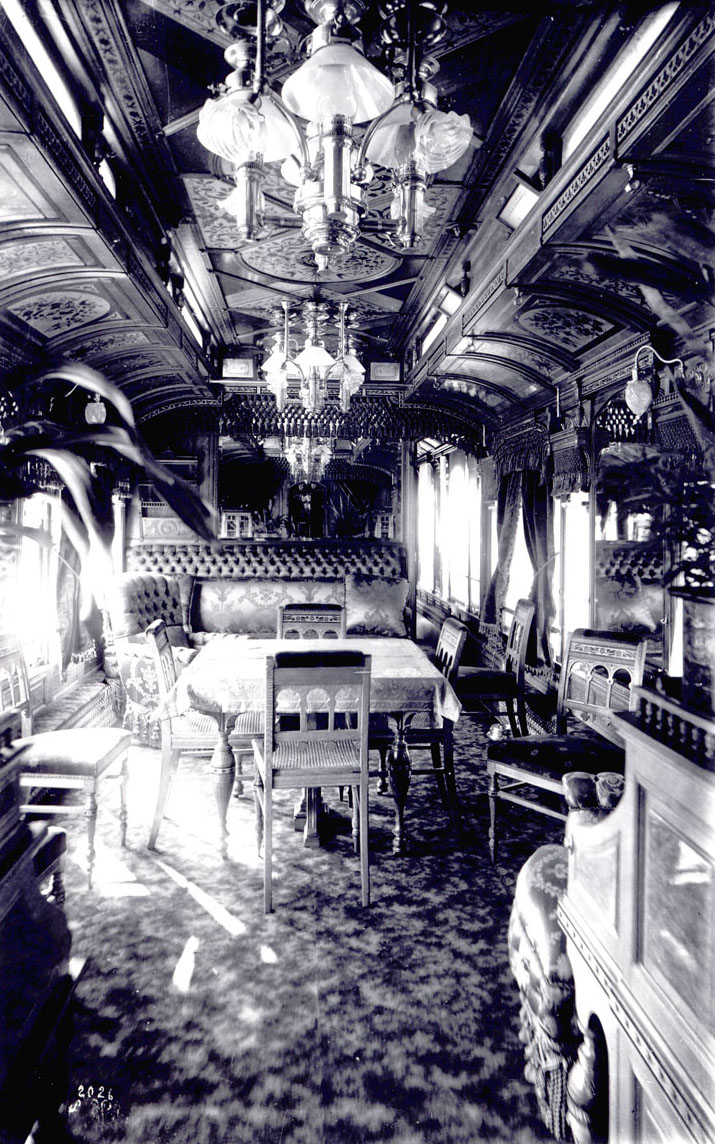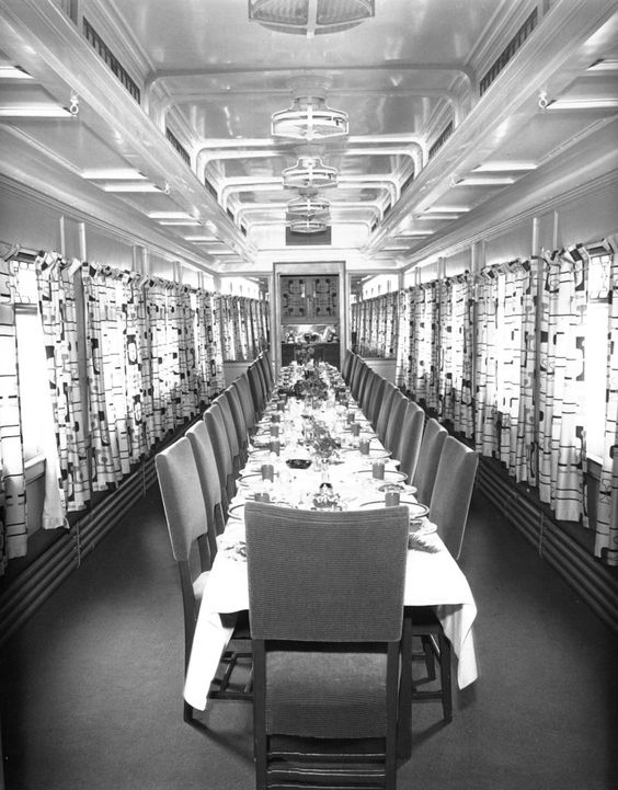 This is an interesting interior of a dining car that was displayed at the 1949 Chicago Railroad Fair: